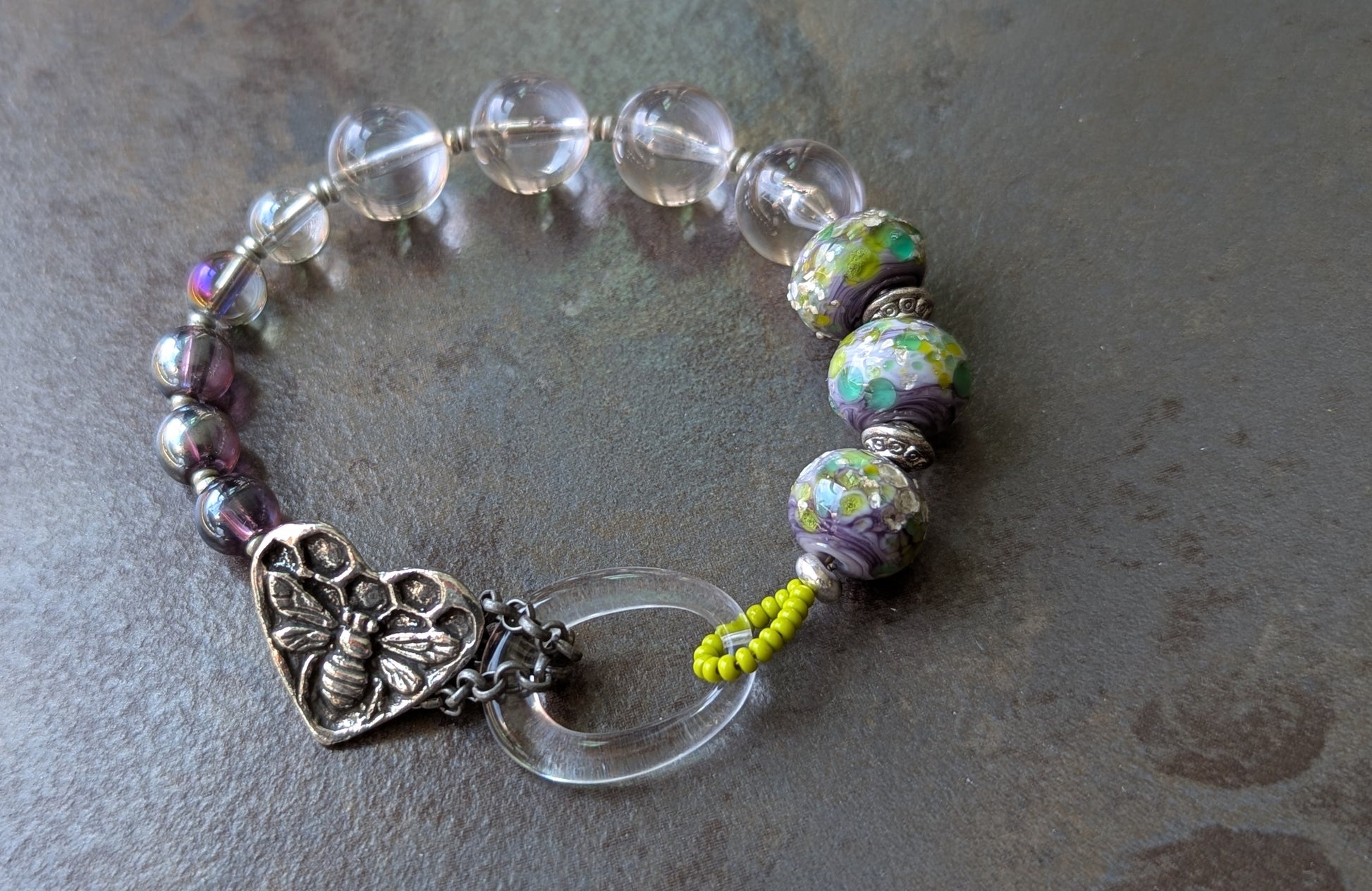 Beaded Bracelet with Bee Button