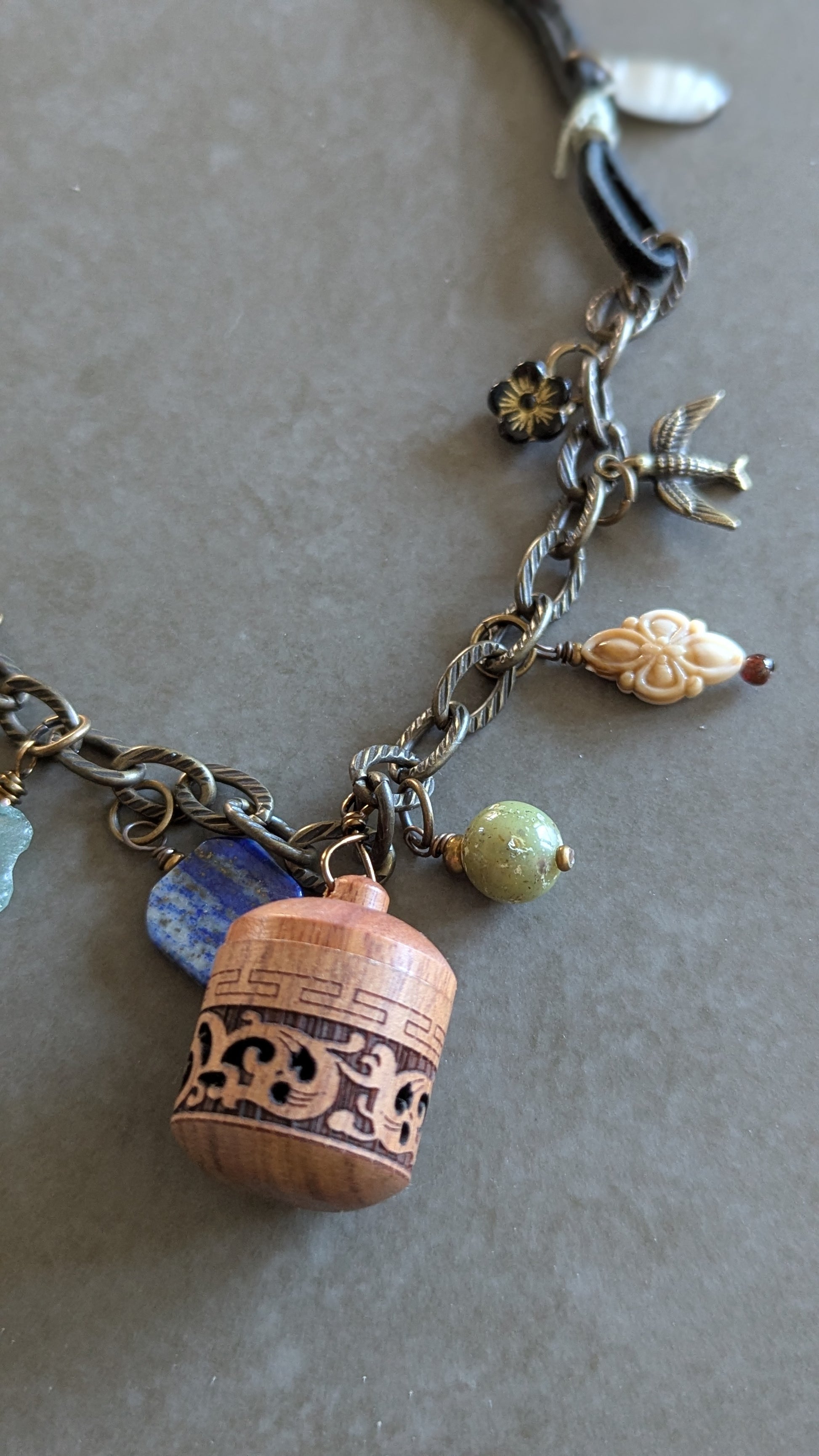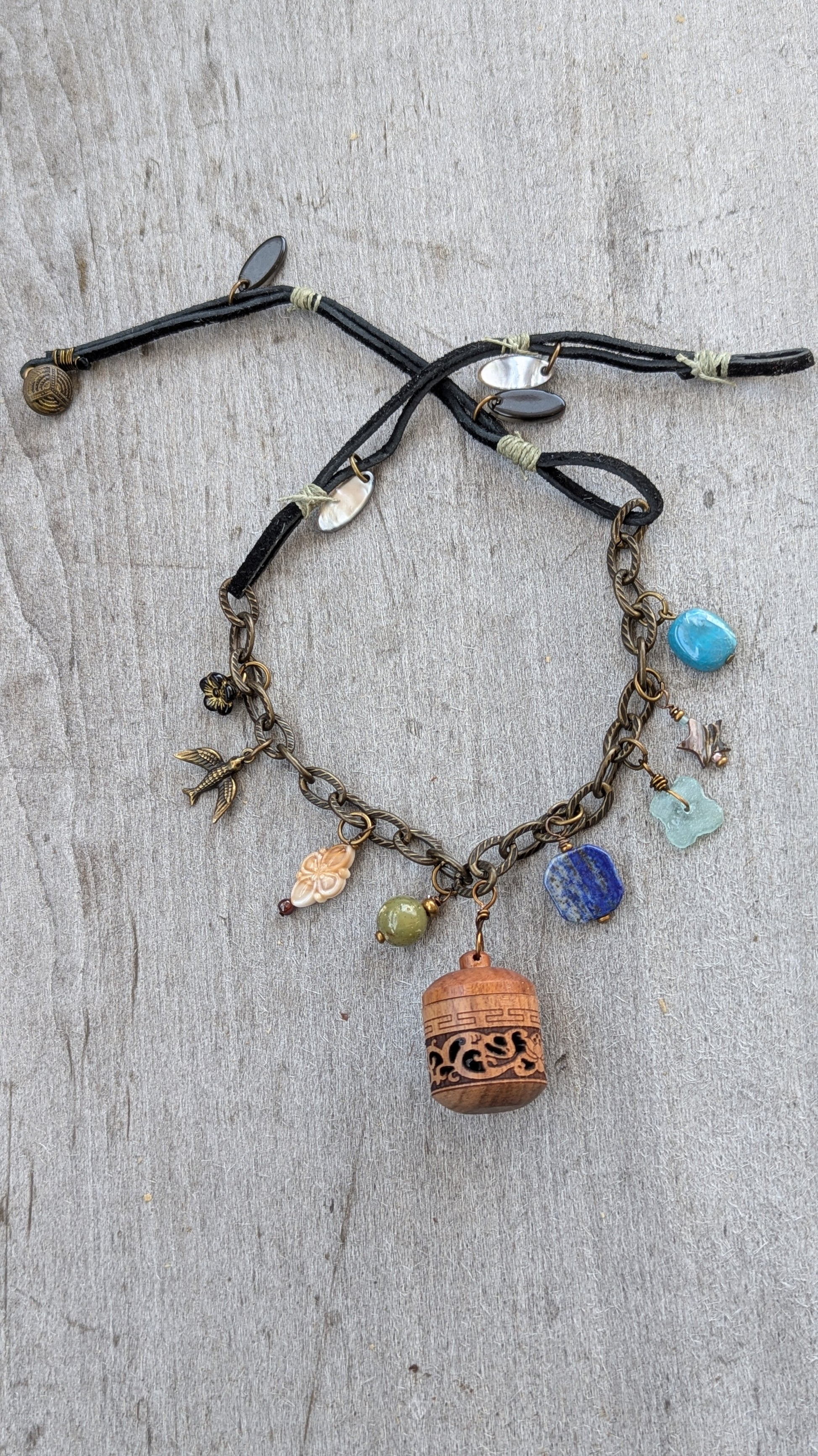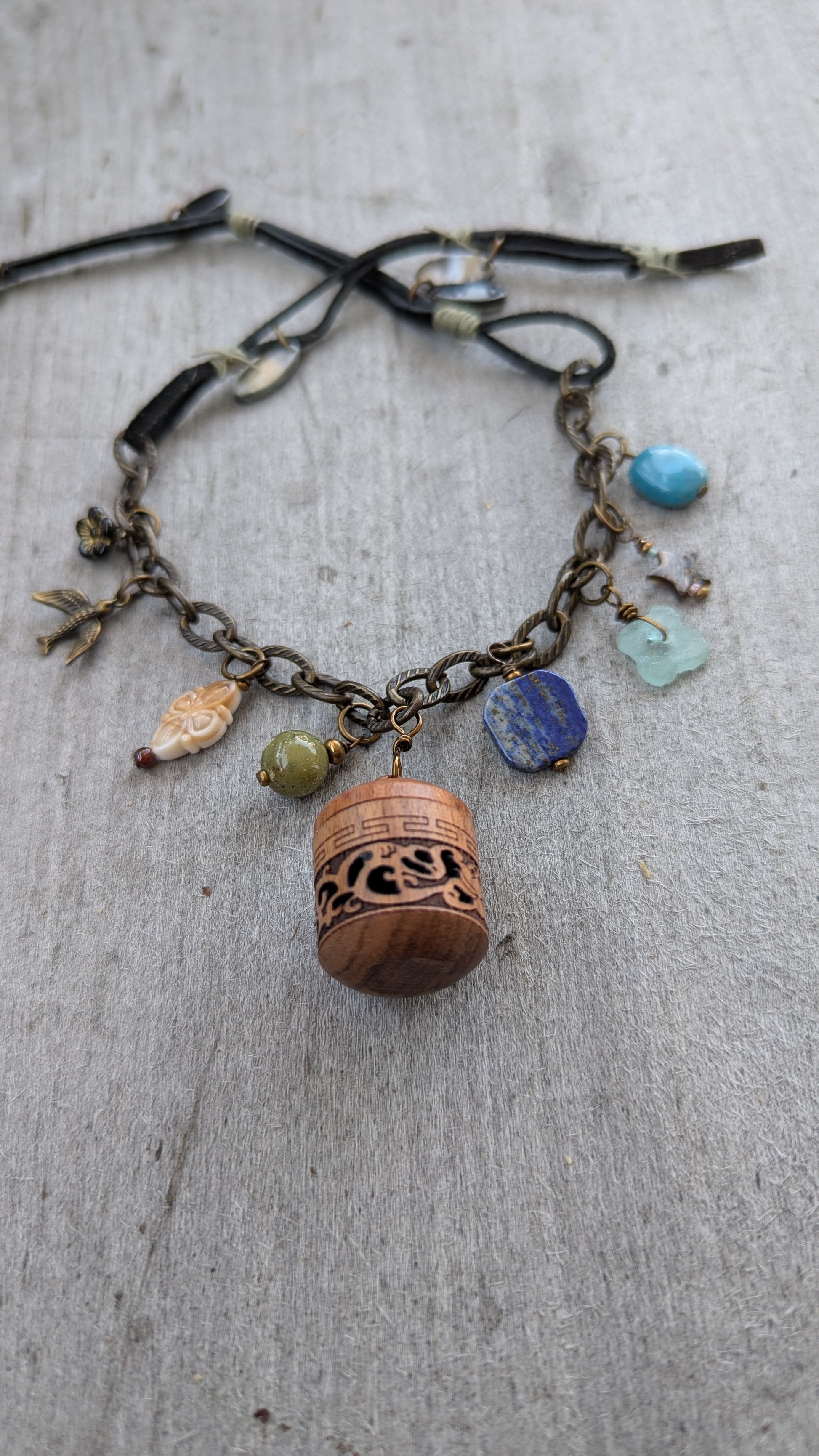 Wood screw top incense cage pendant